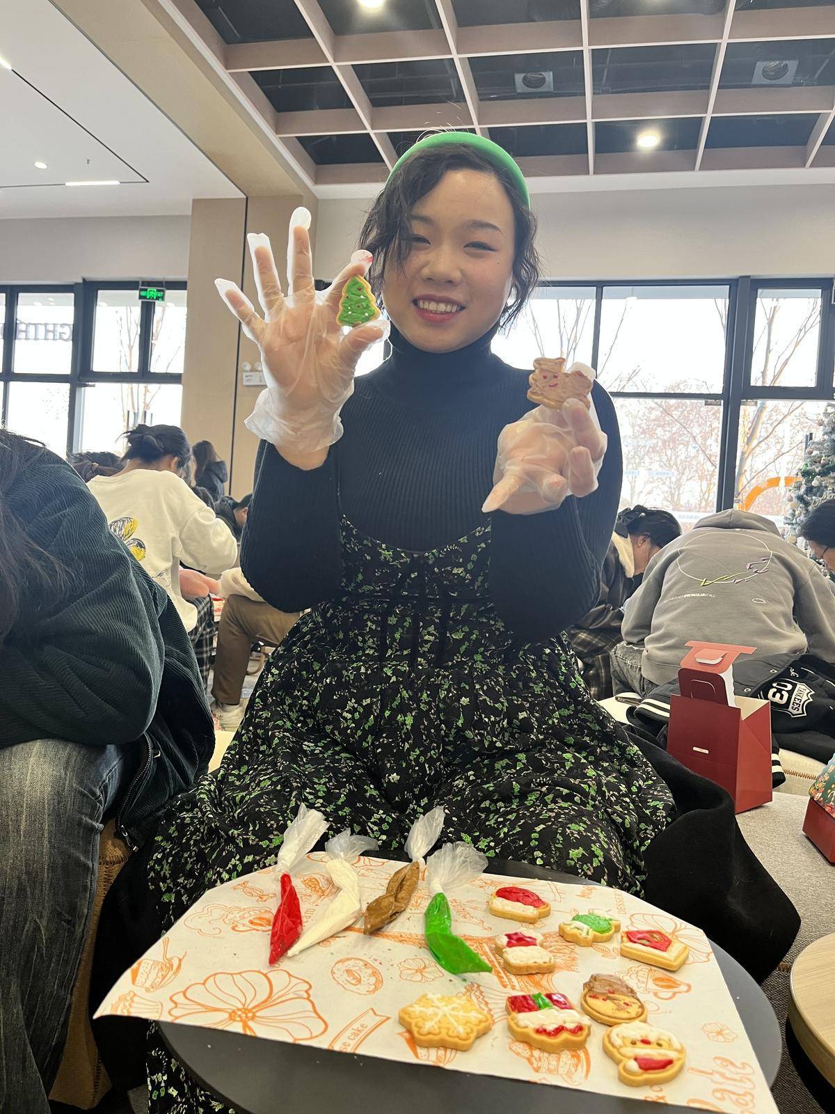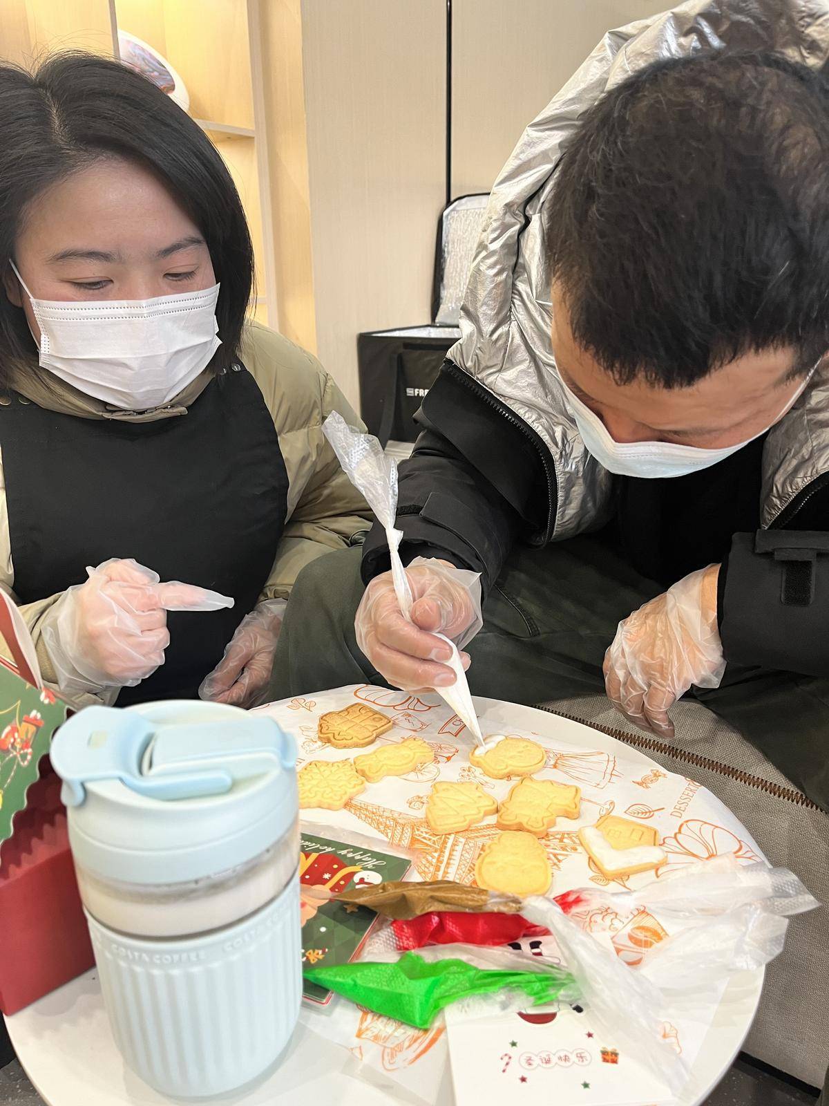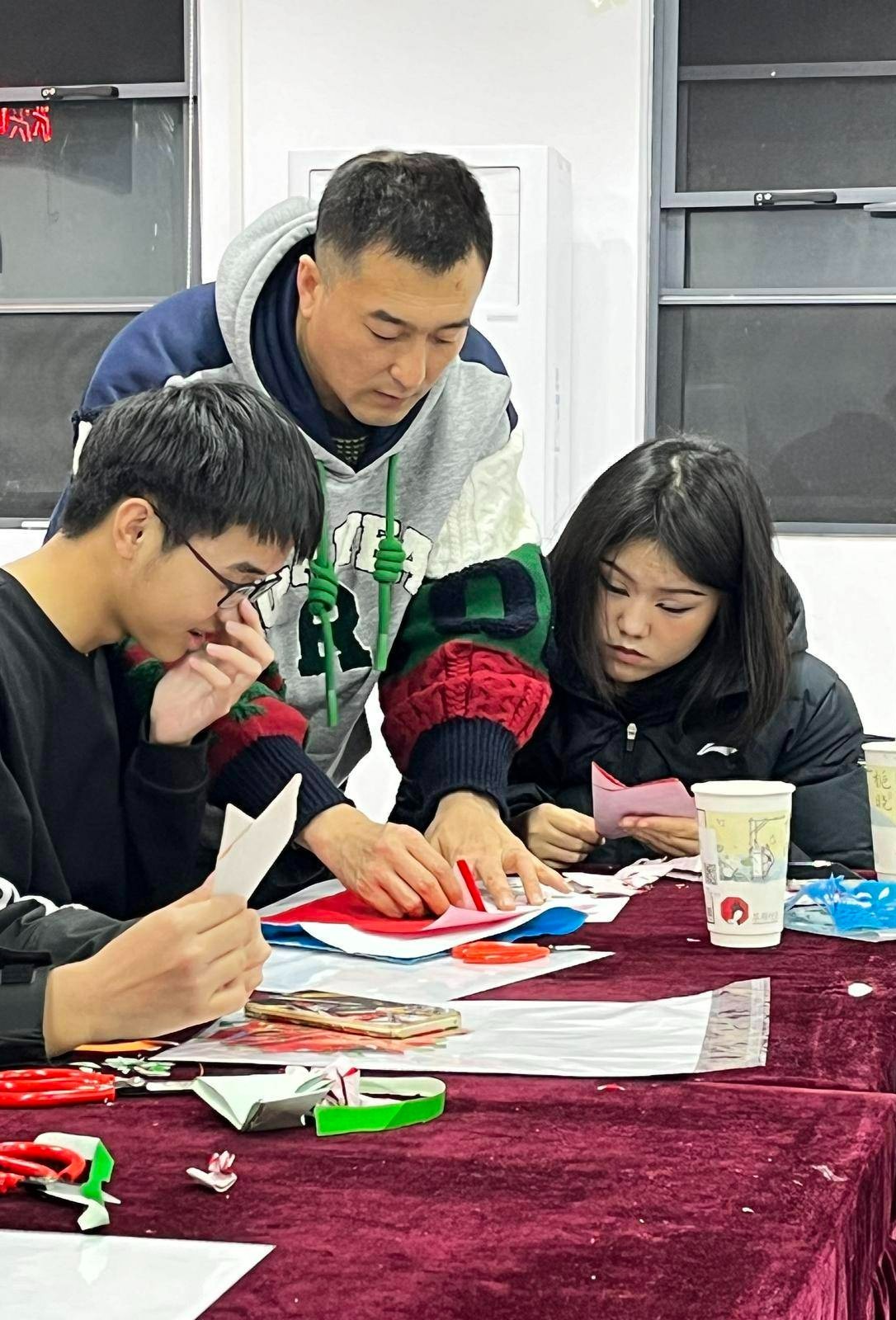 2023年12月24日晚上7时许,武汉市东湖高新区花山街道联投新青年·花山河社区青年夜校内,烘焙老师肖肖穿梭在桌椅之间,为学员答疑解惑。