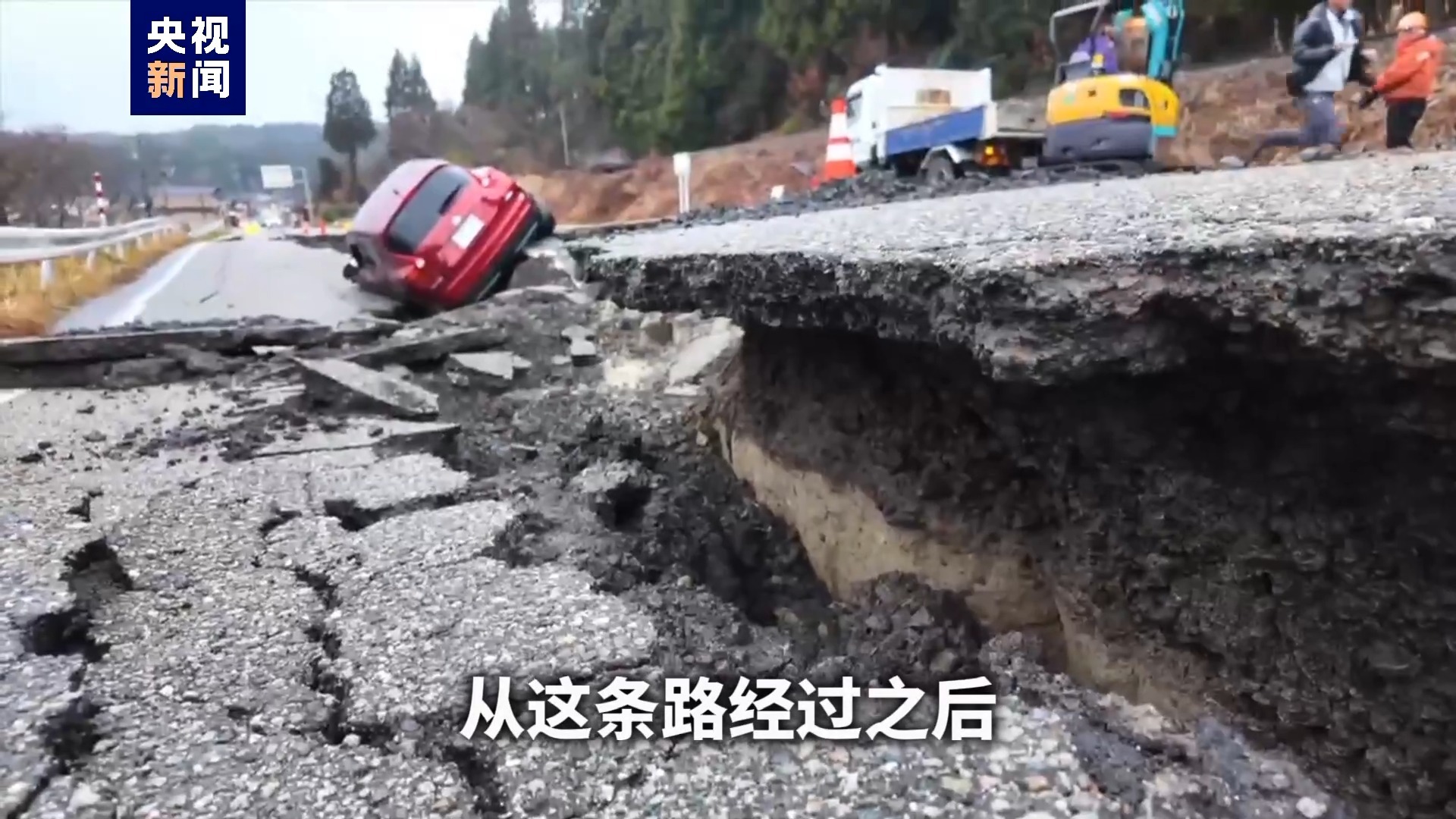 1月3日,中央广播电视总台记者金东在日本石川县能登半岛看到,地震重灾区轮岛市至金泽市的公路因地震受到损毁。
