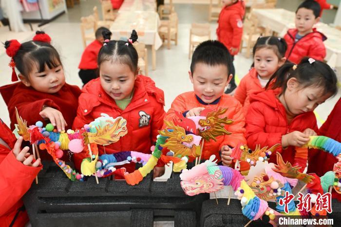 1月3日,新城时光幼儿园,小朋友们在制作翻花龙。中新网记者 何蓬磊 摄