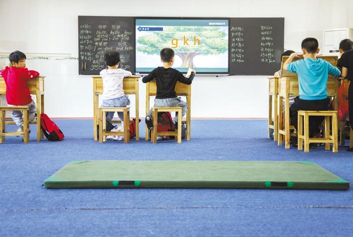 2023年10月17日,浠水理工中专学校,杂技团定向培养的新生在上文化课。