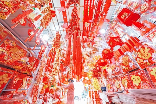 1月3日,武汉汉正街,节日饰品市场上各类传统挂饰、中国结等饰品琳琅满目,店员在备货、理货,迎接新春佳节购物高峰。 楚天都市报极目新闻记者王永胜摄