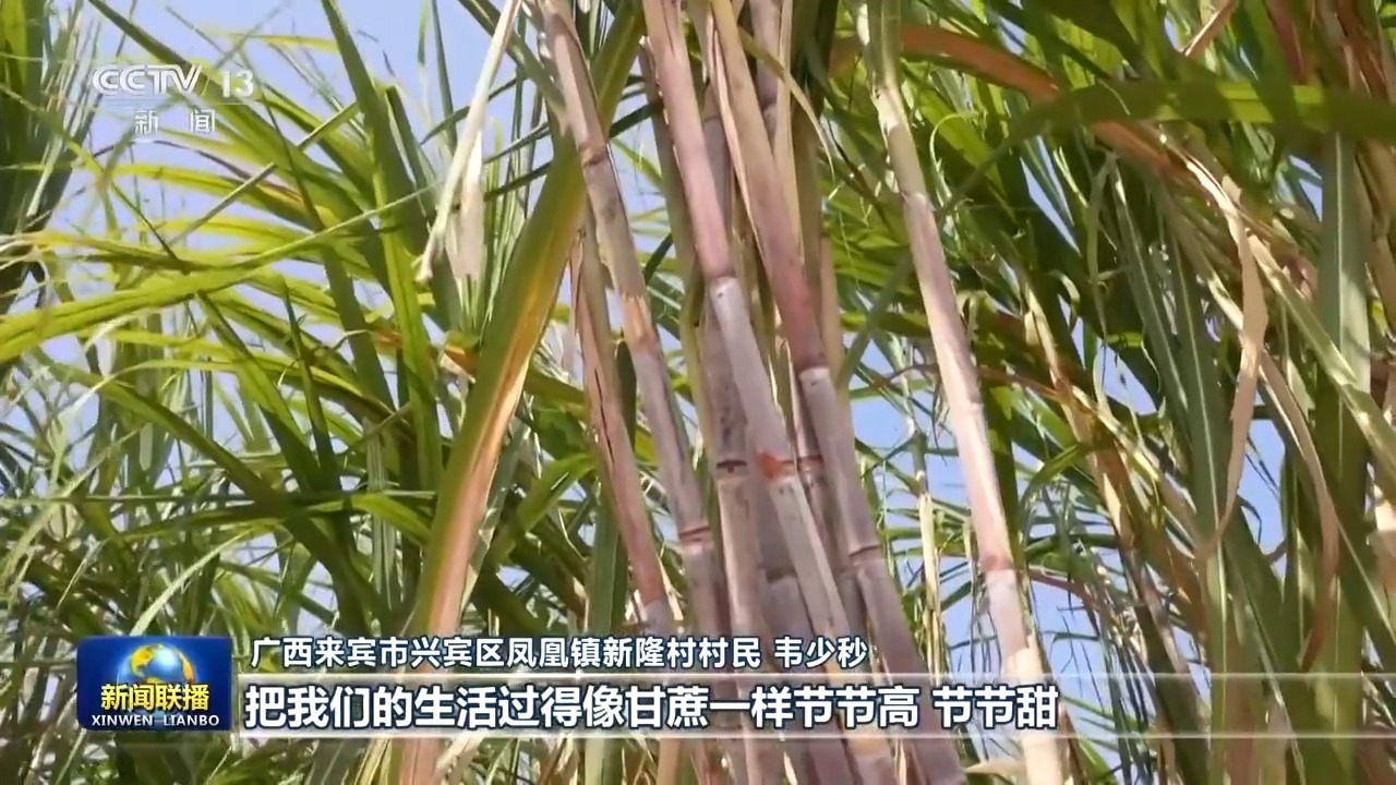广西来宾市兴宾区凤凰镇新隆村村民 韦少秒:2023年,总书记来我们这里考察甘蔗产业,大家备受鼓舞。我们家通过种甘蔗和务工一年挣了14万多元。2024年,我们充满信心,把这份“甜蜜事业”做得更好,把我们的生活过得像甘蔗一样节节高、节节甜。