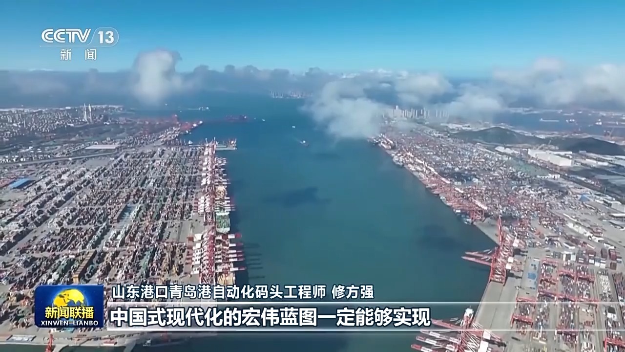 山东港口青岛港自动化码头工程师 修方强:2024年我们将进一步提振发展信心,坚持海陆双向发力,持续构建黄金物流大通道,为推进世界级港口群建设不懈奋斗。我们坚信在习近平总书记的带领下,中国式现代化的宏伟蓝图一定能够实现。