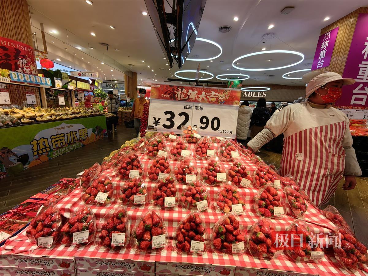 在连锁超市里,最顶级的红颜草莓售价为32.9元一斤,这是在周末活动价的基础上提高了的价格。“现在最低29.9元一斤,销量增长得很快。”导购员介绍,红颜草莓在11月初上市时卖到过59.9元一斤,两个月过后下降了20元,跌幅超三成。“今年的草莓果型漂亮、甜度高,价格降得快,对消费者来说是好事。”