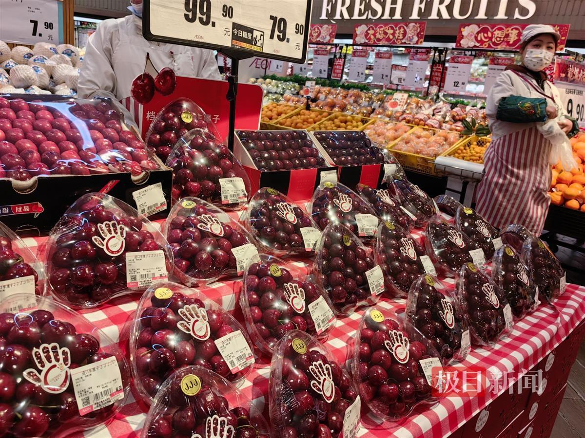 “2个J的进口车厘子79.9元一斤,要是周末来买,还可以便宜10块钱。”见到记者在货台前端详,导购员随即凑上来说:“现在车厘子便宜了很多,一盒差不多半斤,30元出头,可以尝尝了。”