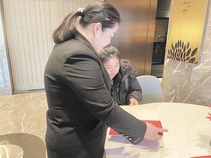 大堂内服务台前,也有不少食客打进电话想要预订年夜饭。“目前,腊月二十八至除夕,中餐和晚餐的包间已经全部订满了,其余时间也已经预订了九成。”该店店长柯女士称,最近到店或拨打电话预订年夜饭的客人不少,已经没有多少余位了。