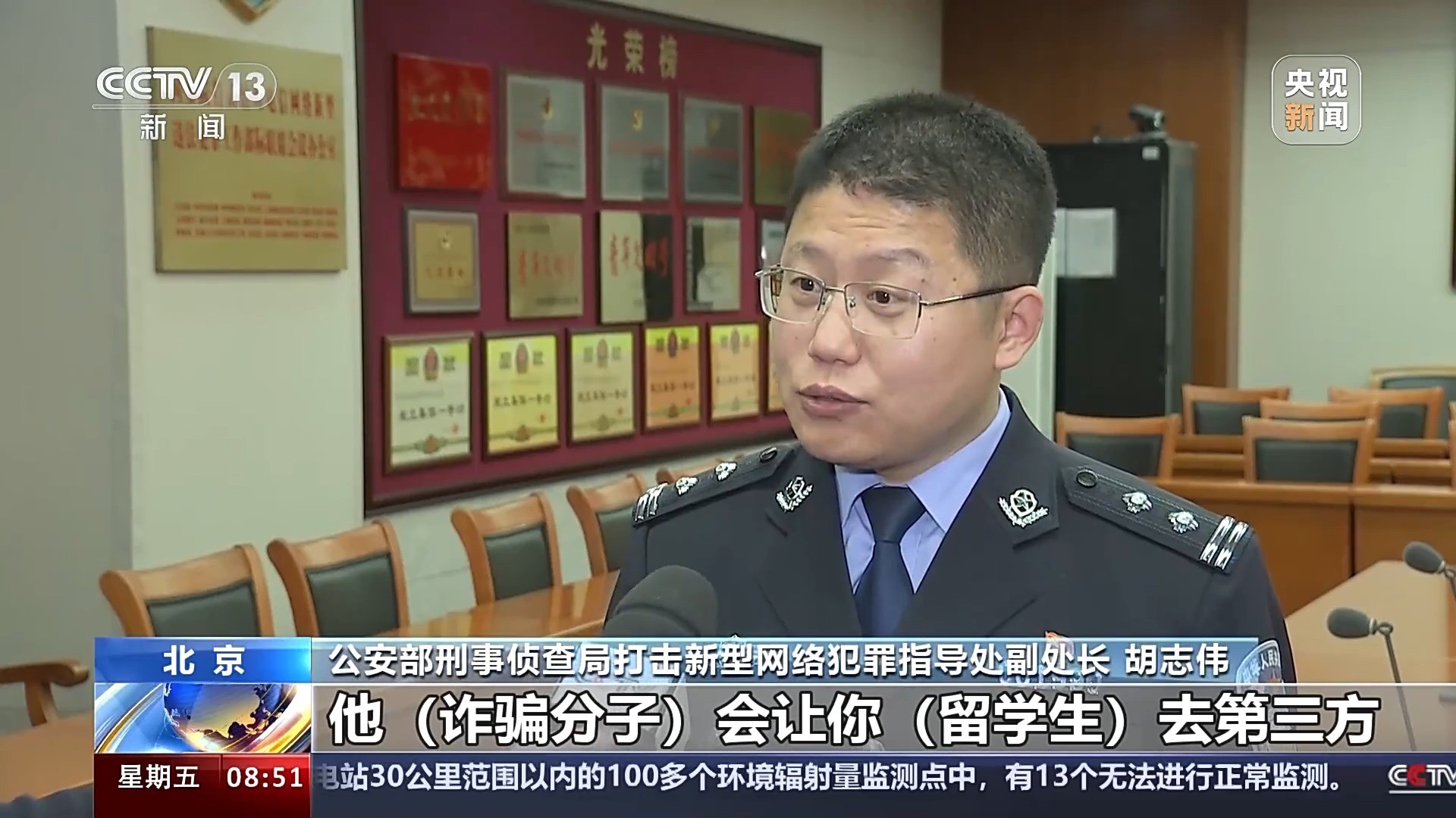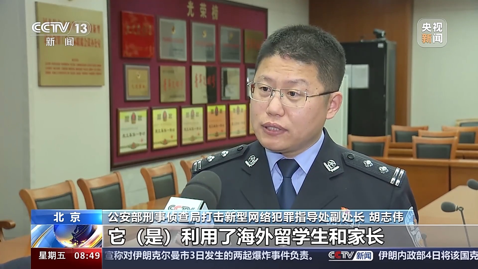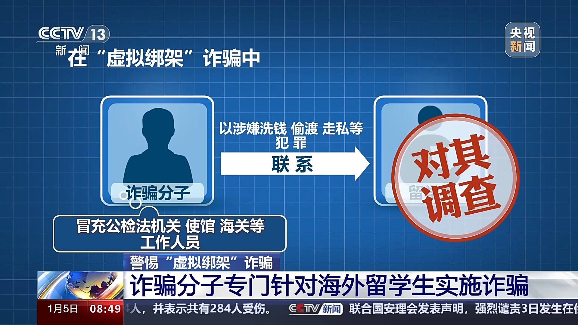 公安部刑事侦查局打击新型网络犯罪指导处副处长 胡志伟:这类诈骗是传统冒充“公检法”诈骗的升级版,它是利用了海外留学生和家长远隔万里沟通不畅的现实情况,对学生和家长实施双向诈骗的一类手法,这类手法不仅骗取他们巨额的财产,同时会造成强大的精神伤害。