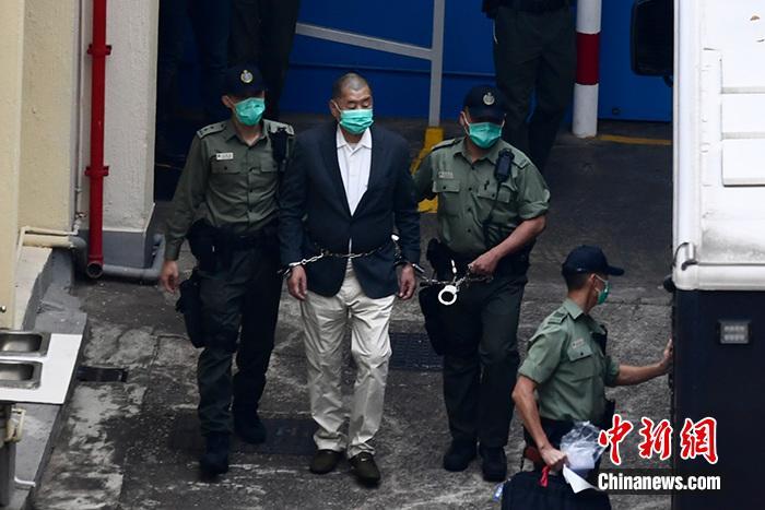图为黎智英被押解上惩教署车辆的资料图。 中新社记者 李志华 摄