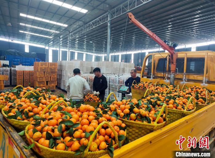 1月5日,在广西南宁市西乡塘区双定镇义平村,村民将刚采摘的砂糖橘打包装箱。中新网记者 黄艳梅 摄