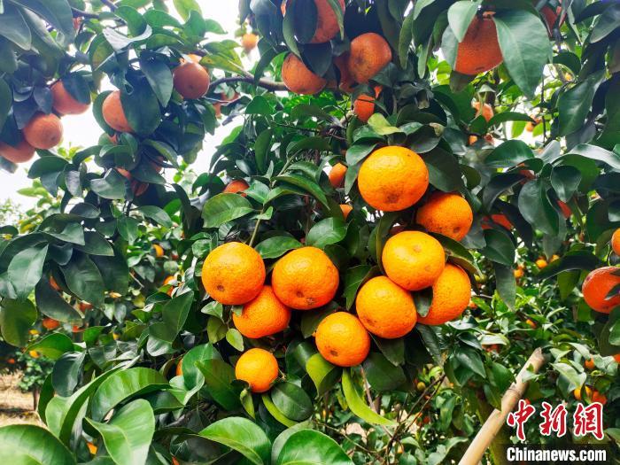 1月5日,在广西南宁市西乡塘区坛洛镇同富村,一簇簇砂糖橘挂满枝头。中新网记者 黄艳梅 摄