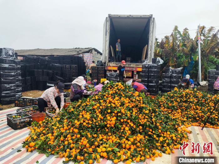 1月5日,在广西南宁市西乡塘区坛洛镇同富村,村民正在分拣刚采摘的砂糖橘。中新网记者 黄艳梅 摄
