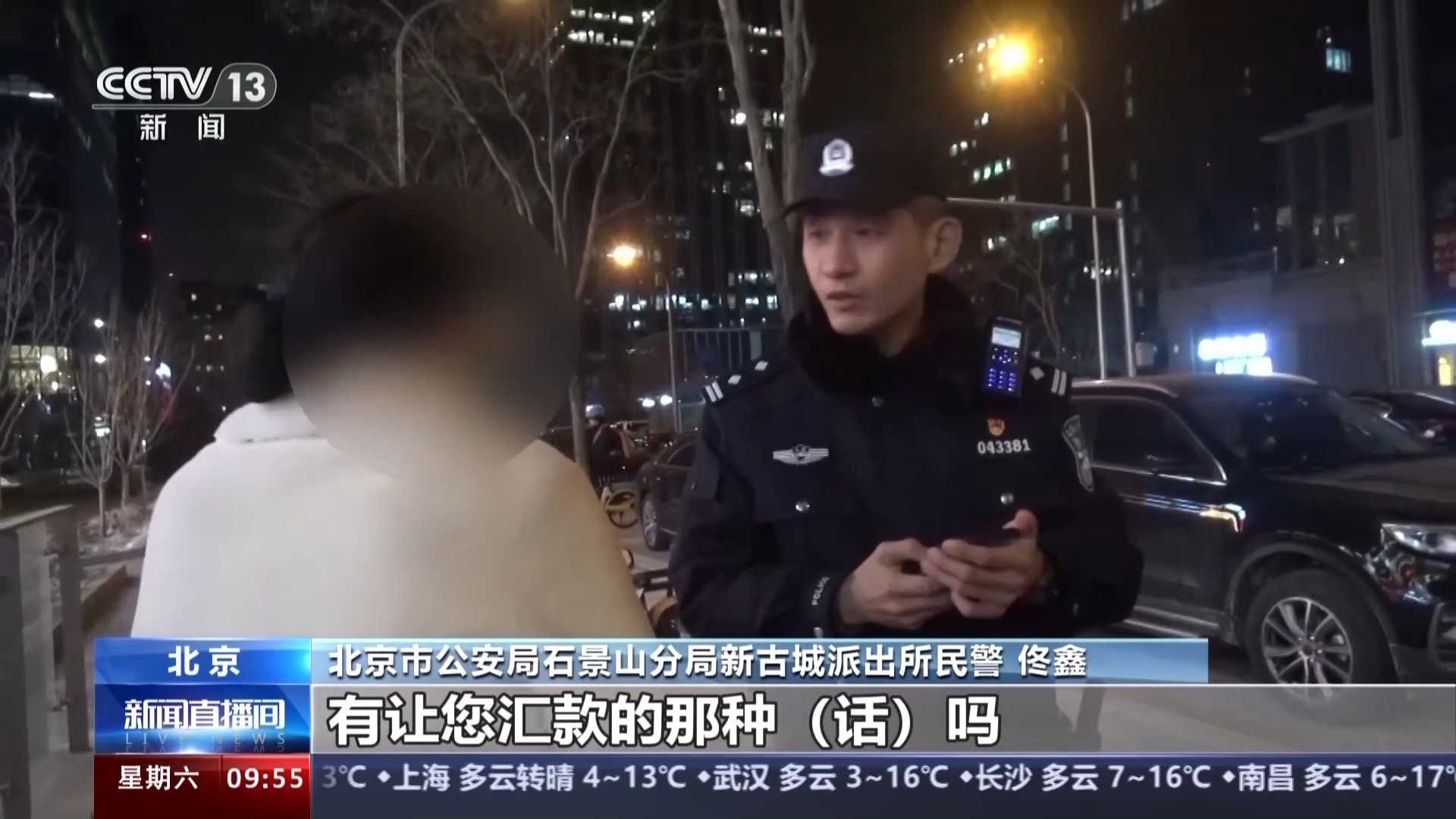 北京市公安局石景山分局新古城派出所民警 佟鑫:我看一眼那照片,您放一下我看看,有让您汇款的那种话吗?