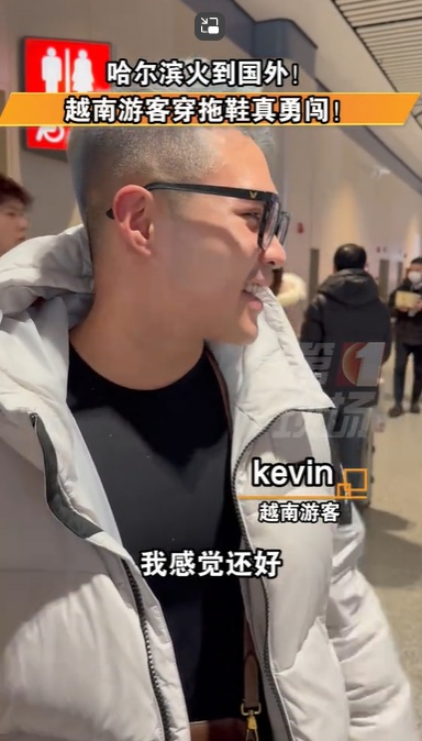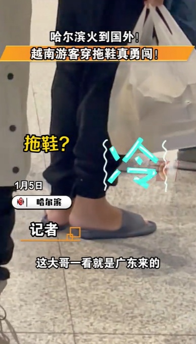 据第一现场消息,1月5日,广东深圳台记者何玉在哈尔滨国际机场采访时,发现一名穿拖鞋的男子,以为是碰到广东同乡,沟通后了解到该男子来自越南。对于-20℃的哈尔滨,这位越南国际友人表示“感觉还好!”