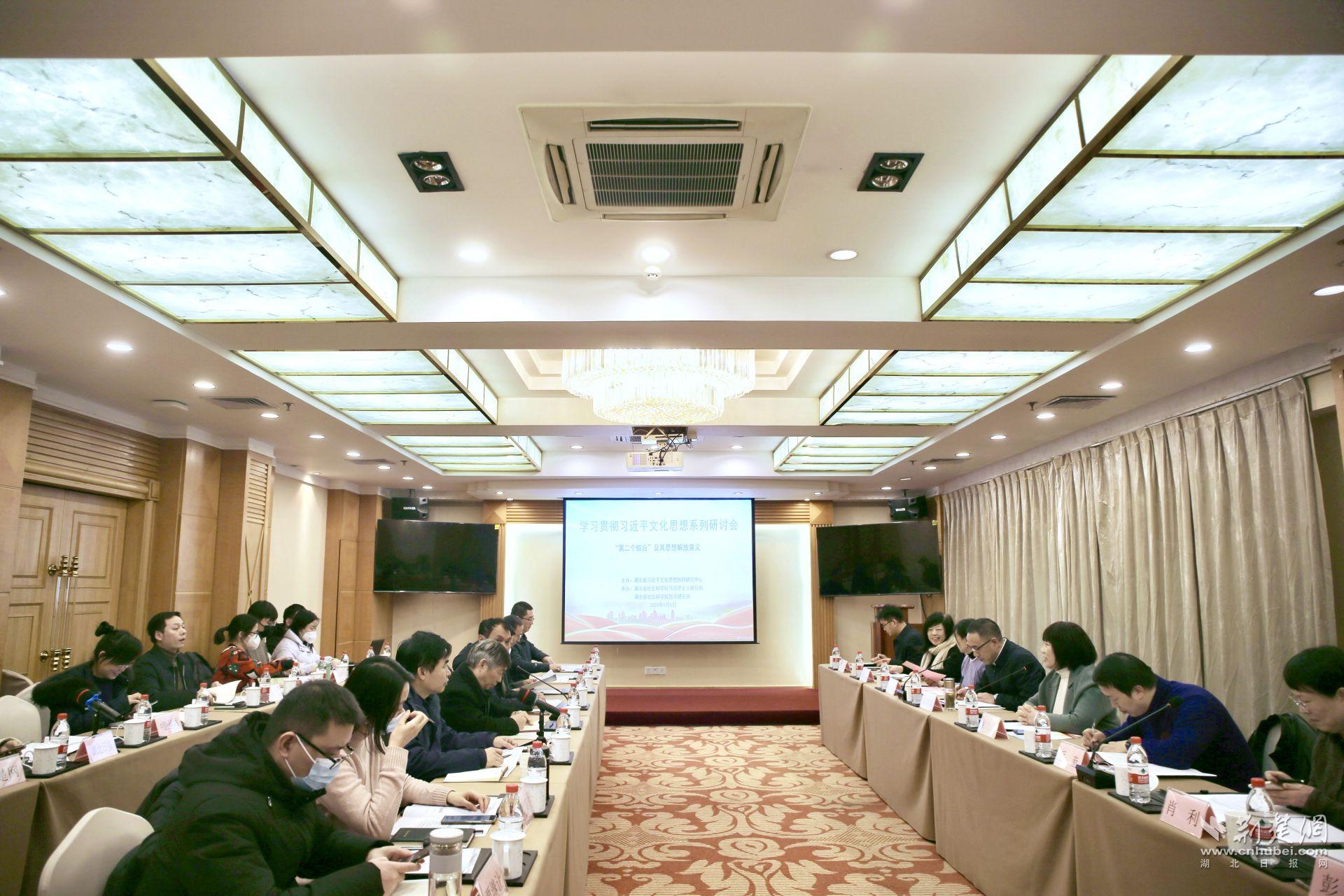 荆楚网(湖北日报网)讯(记者 廖逢倩 实习生 刘璐 通讯员 科研处)长江奔涌,见证思想光芒。由湖北省社会科学院主办、马克思主义研究所、哲学研究所承办的“第二个结合”及其思想解放意义——学习贯彻“习近平文化思想”系列研讨会于2024年1月5日下午在汉胜利召开。来自省委宣传部理论处、省社科联学术部相关领导,华中科技大学、华中师范大学的马克思主义研究领域的两位知名专家,湖北省社会科学院的十余位专家参加了此次会议。省社科院副院长袁北星、科研处处长彭玮、马克思主义研究所所长罗志刚分别主持会议。