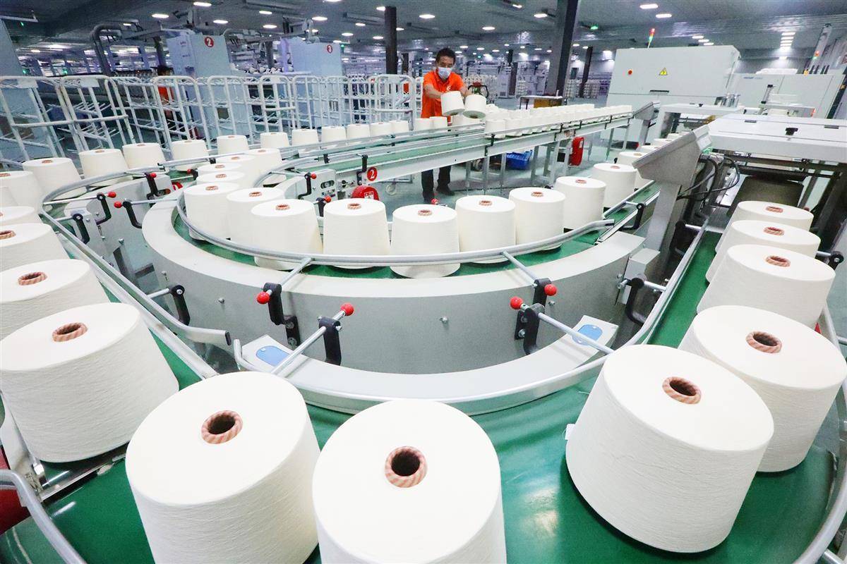 1月6日,十堰市房县纺织工业产业园恒达纺织有限公司,工人在纺织车间生产高端紧密纺纱线。新年伊始,房县恒达纺织、弘耀袜业、卓琳制袜、奇伟服饰、瑞泰针纺、雨田防护用品等30多家规模型棉纺企业,全力加速忙生产高端紧密纺纱线、棉袜、棉服等订单产品,出口欧亚、东南亚、中东国家。房县纺织工业产业园占地500亩,集聚纺织服装上下游企业,实现原材料“棉纱、锦纶、涤纶”到“包覆纱、橡筋线、勾编丝、整经、倍捻、织布、服装袜业”产业链条的全覆盖,涵盖纺纱、高性能纤维纺丝、纺织成品,年均生产纺纱10万锭、高性能纤维纺丝20万吨,成纤聚合物20万吨、服装加工60万件套、鞋袜服饰数千万件。