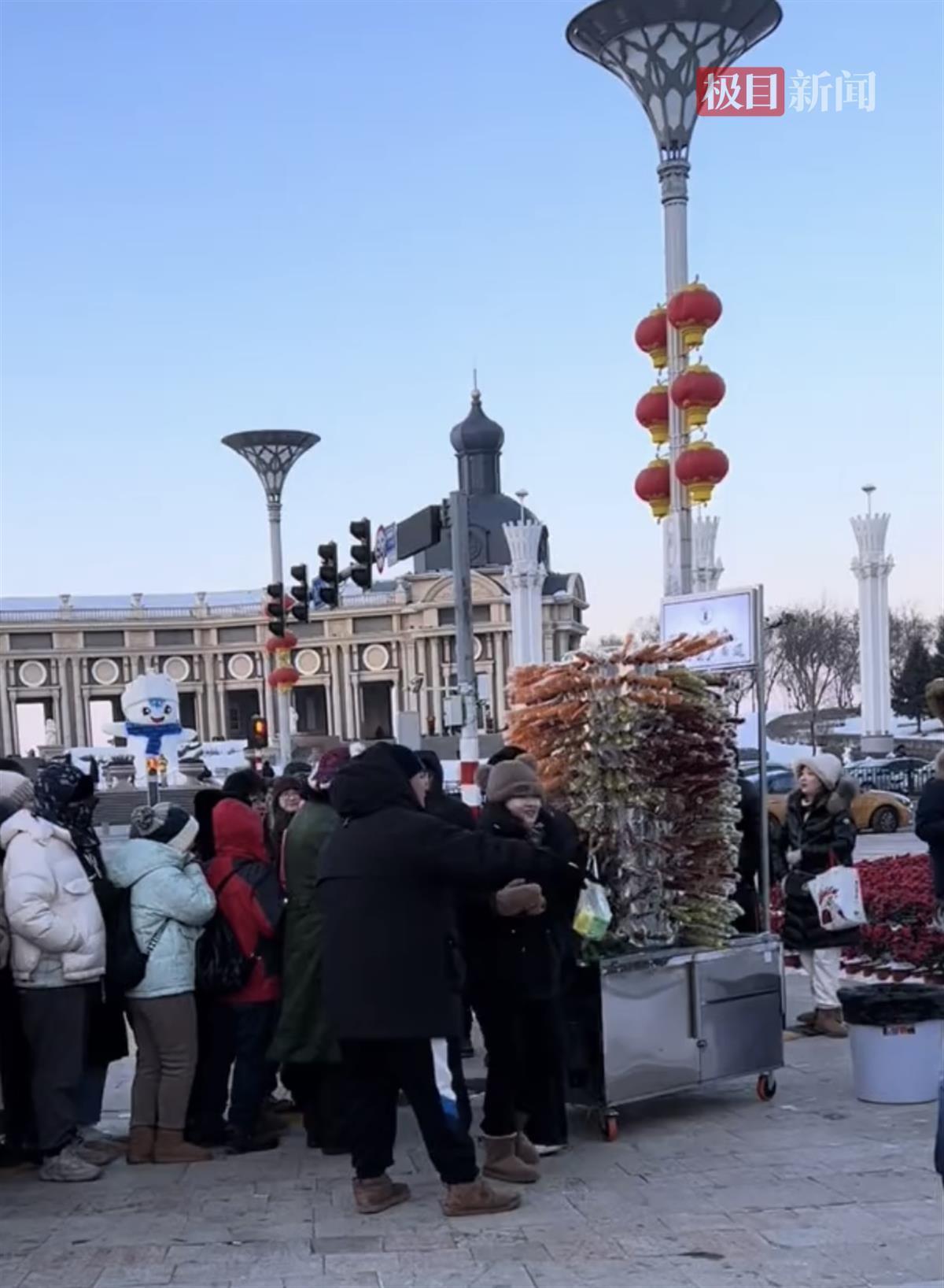 “我是本地人没领,让客人先来。”市民王女士告诉记者,她在现场看到,博主“苟宋”和团队成员一直在发糖葫芦、维持秩序,现场有很多外地游客排队领取,“南方人说哈尔滨好热情。”