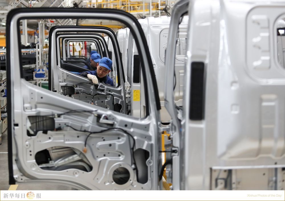 1月8日,工人在组装车间工作。当日,首批商丘地产新能源轻卡车在位于河南省商丘市豫商经济技术开发区现代装备制造产业基地的河南福田智蓝新能源汽车组装车间下线。