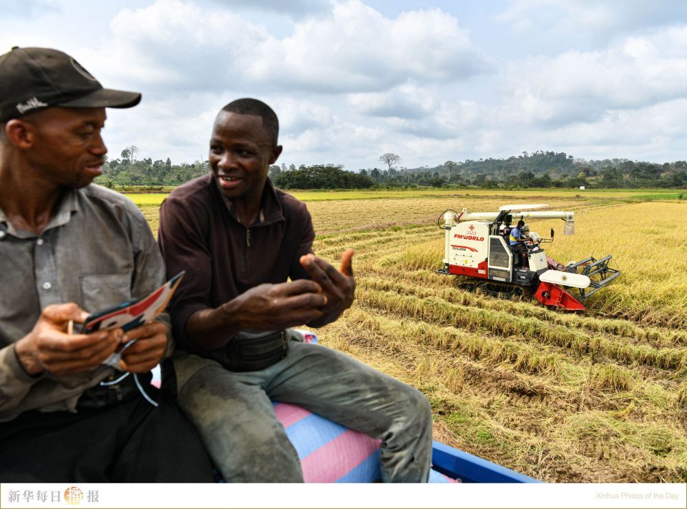 1月8日,稻农(右)在科特迪瓦迪沃省格格杜垦区驾驶收割机收割水稻。位于科特迪瓦迪沃省的格格杜垦区近日迎来水稻成熟,当地稻农在稻田里忙着收割水稻。格格杜垦区是中科两国农业合作示范基地,也是科特迪瓦全国闻名的水稻种植基地。多年来,中国援科农业技术合作组专家通过新稻种培育与推广、水稻种植技术培训、垦区水利设施管理等多种方式帮助垦区内稻米产量和质量大幅提高,稻农收入显著增加。