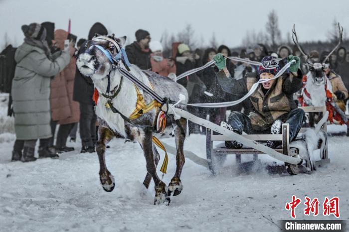 资料图。图为根河市举办冷极冰雪季开展驯鹿拉雪橇大赛。根河市委宣传部供图