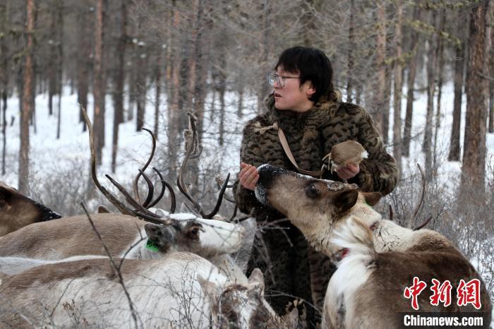 中新网呼伦贝尔1月9日电 题:驯鹿出山,围观“中国最后一支使鹿部落”