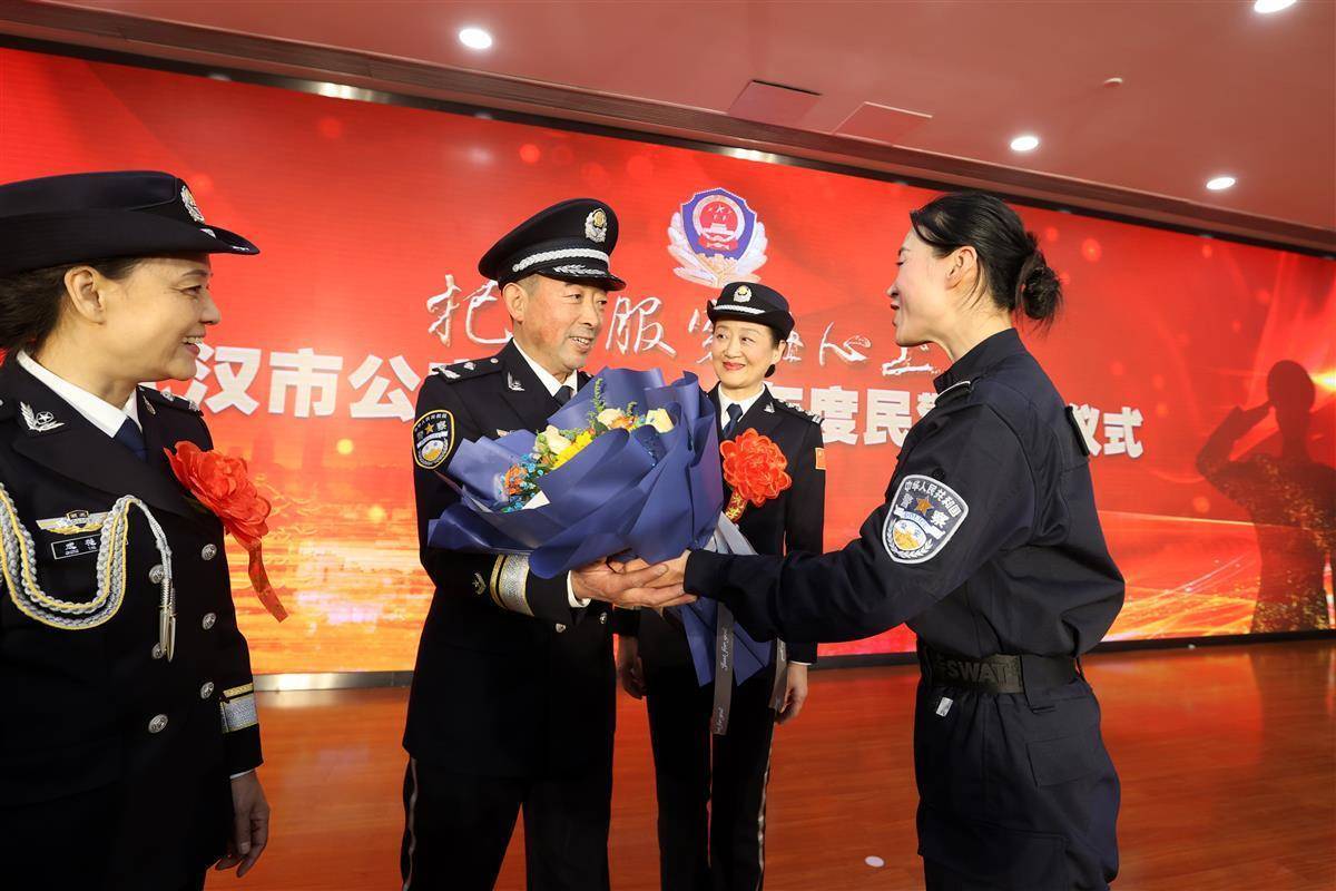仪式最后,武汉市公安局主要领导代表市局党委和全体民警辅警,向退休民警表示衷心感谢并致以崇高敬意。他说,薪火相传才能生生不息。站在新的历史起点,要传承好退休同志永葆初心、牢记使命的崇高品质,发扬好他们锐意进取、攻坚克难的战斗精神,弘扬好他们严于律己、廉洁奉公的优良作风,坚持政治建警,从严治警,为加快打造新时代英雄城市创造更加安全稳定的社会环境。