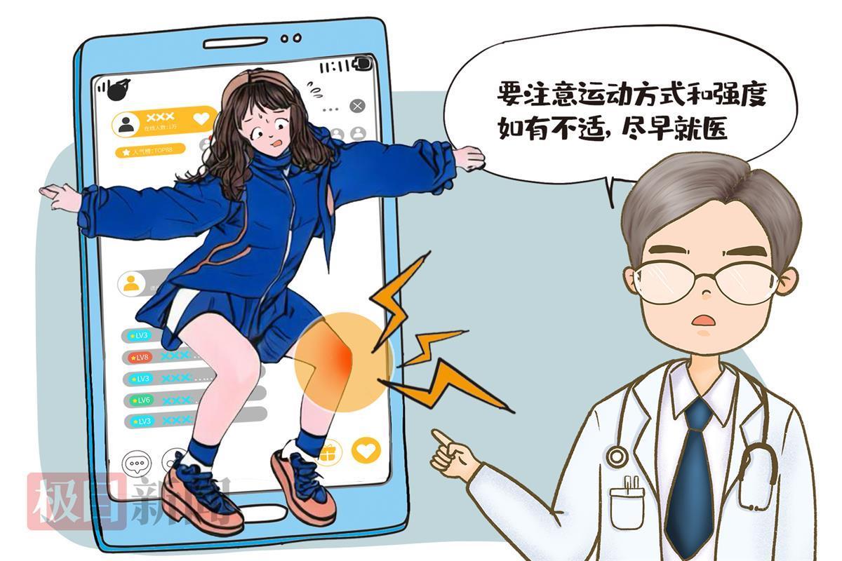 25岁的小李(化姓)是一名网络主播,直播时常和网友互动,有时会在镜头前跳舞吸粉。据小李介绍,元旦假期后,她一连4天连续“超长直播”,每天持续近7个小时,尤其是跳舞后的左膝盖又酸又痛,休息了几天后依然不见好转,她便来到武汉市第四医院就诊。