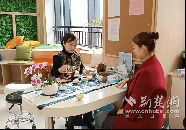 随后,在唐家墩街道讲解员刘亚禾的带领下,与会人员进一步现场观摩了解CFD时代财富中心江城红领驿站,并参与活动现场丰富多彩的体验活动,行政审批局政策宣讲、湖北中西医结合医院中医理疗服务、放松身心的品茶团建活动和檀香饼 DIY ,真切感受楼宇阵地的活力与魅力。