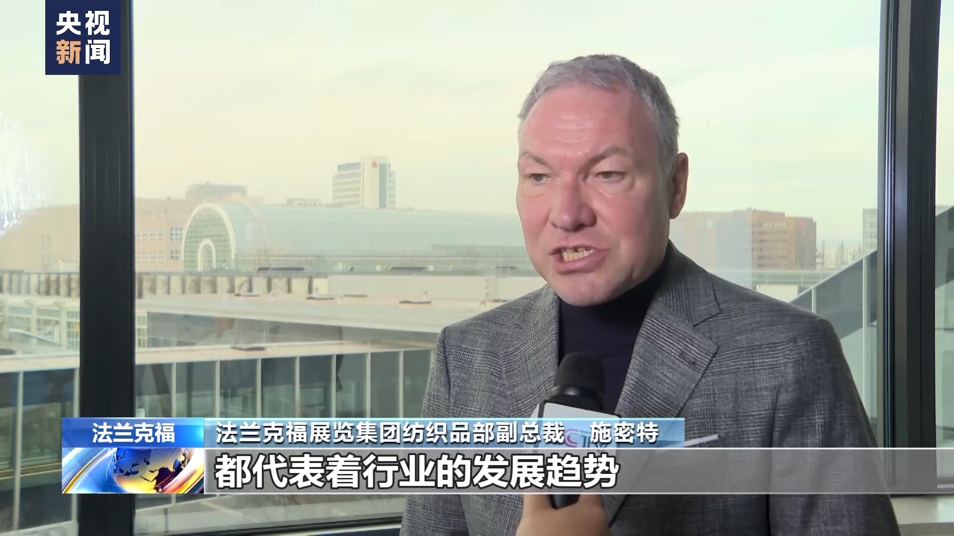 法兰克福展览集团纺织品部副总裁 施密特:展会上展出的新设计和新材料都代表着行业的发展趋势,同时展会也在介绍一切可实现的新科技,比如使用蛋白质或淀粉合成的生物技术纺织品,这种新型纺织品可以完全自然降解。