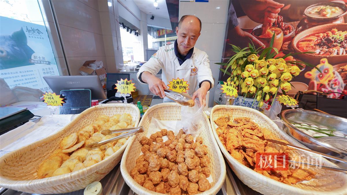 “肉圆子来4斤,藕圆子也搞2斤。”在一家打出“黄陂圆子”招牌的门店外,专程从汉口台北路骑车前来买圆子的祝师傅带了一个大大的保温袋来装圆子:“进了腊月就要为过年做准备,现在可以多尝一尝,看看哪家店最好吃,最后还要再集中打一次年货的。”