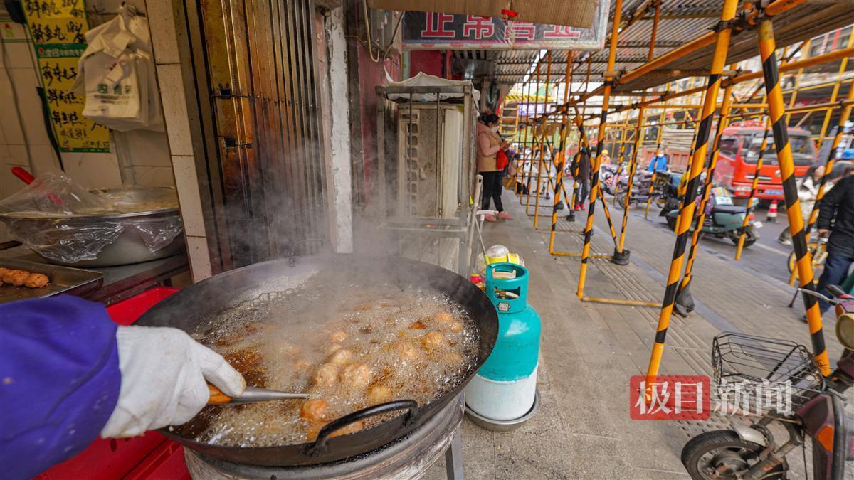 1月11日上午10时,记者来到汉口天声街的闹市,美食的香味从早早升起的炊烟中飘散开去,打开了每一位前来打年货的市民的“买菜包”。其中,几家现炸肉圆、藕夹、鱼块的店面生意最为红火。
