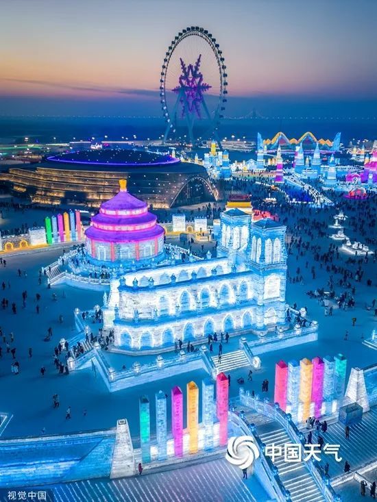 ▲2023年12月27日,灯光璀璨的哈尔滨冰雪大世界。(签约供稿人/视觉中国 来源视觉中国)