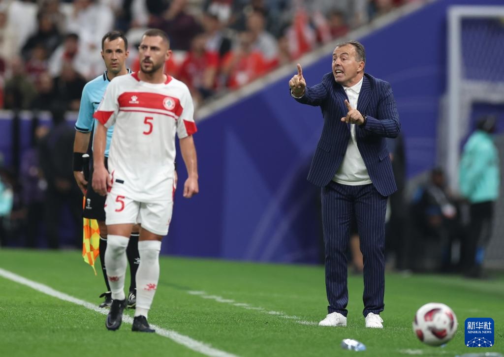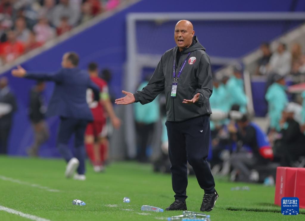 1月12日,卡塔尔队主教练巴托洛梅·马尔克斯·洛佩斯在场边指挥。