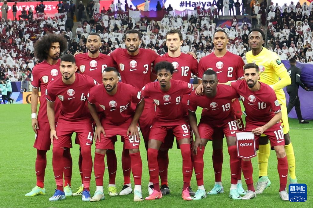 1月12日,卡塔尔队首发球员赛前合影。