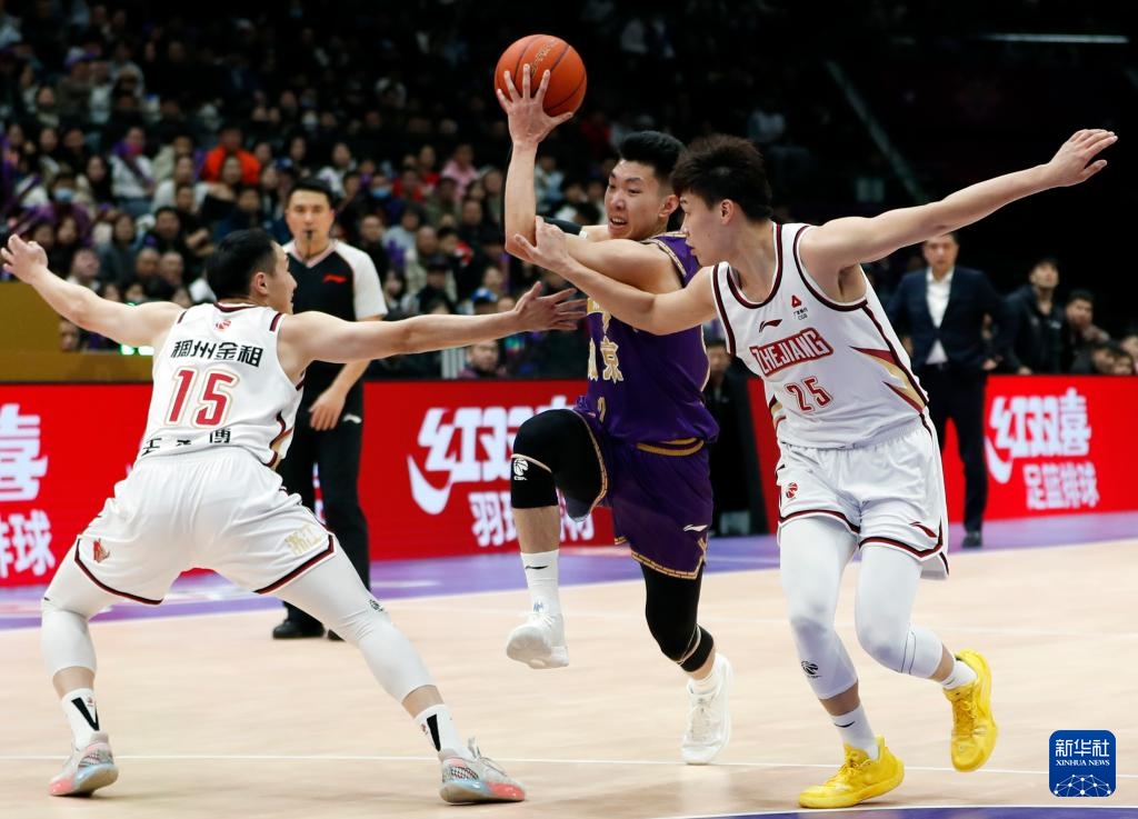 1月13日,浙江稠州金租队球员余嘉豪(前左)在比赛中突破。新华社记者 雒圆 摄