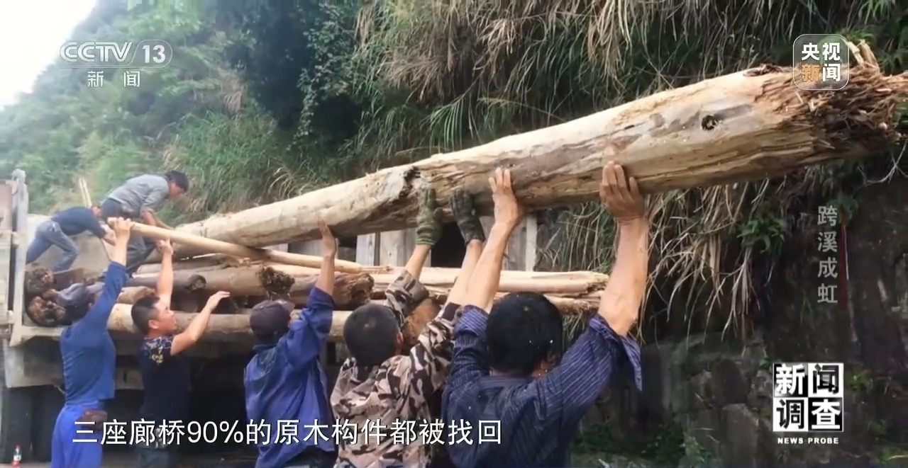 洪灾过后,乡民做的第一件事情不是修缮自家的房屋,而是自发地搜寻、打捞、搬运廊桥的木构件。不到一周时间,三座廊桥90%的原木构件都被找回。