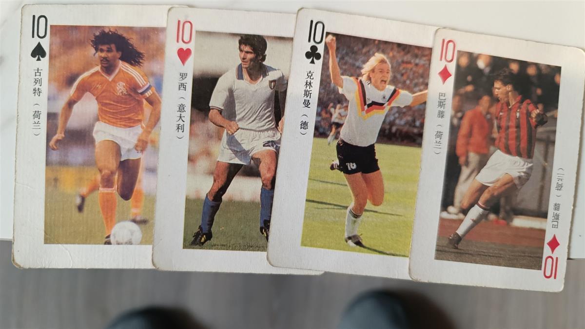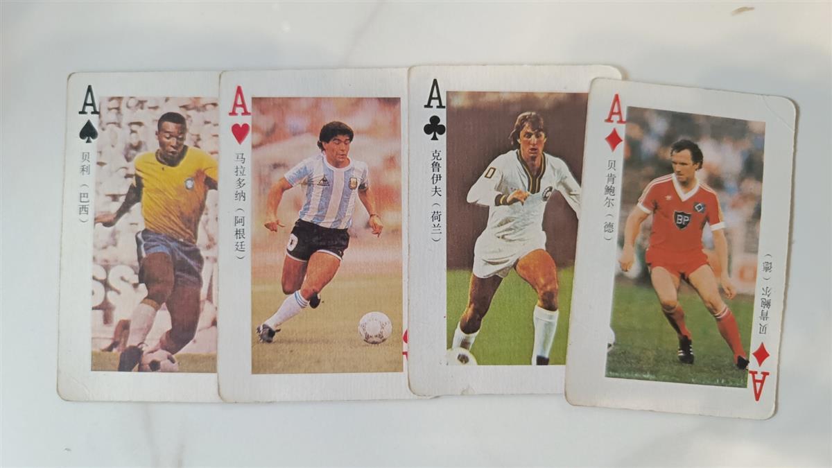 前不久,“足球皇帝”贝肯鲍尔去世的消息,让不少球迷感慨一个时代的落幕。黄石球迷李先生分享了他收藏的一副世界足球球星扑克。52张扑克牌上,印有52位属于那个时代的绿茵场巨星,古力特、克林斯曼、马特乌斯、巴蒂斯塔……全是当时叱咤风云的人物。其中,A的阵容最为华丽:方片A正是贝肯鲍尔,黑桃A则是球王贝利,梅花A是克鲁伊夫,红桃A是马拉多纳。