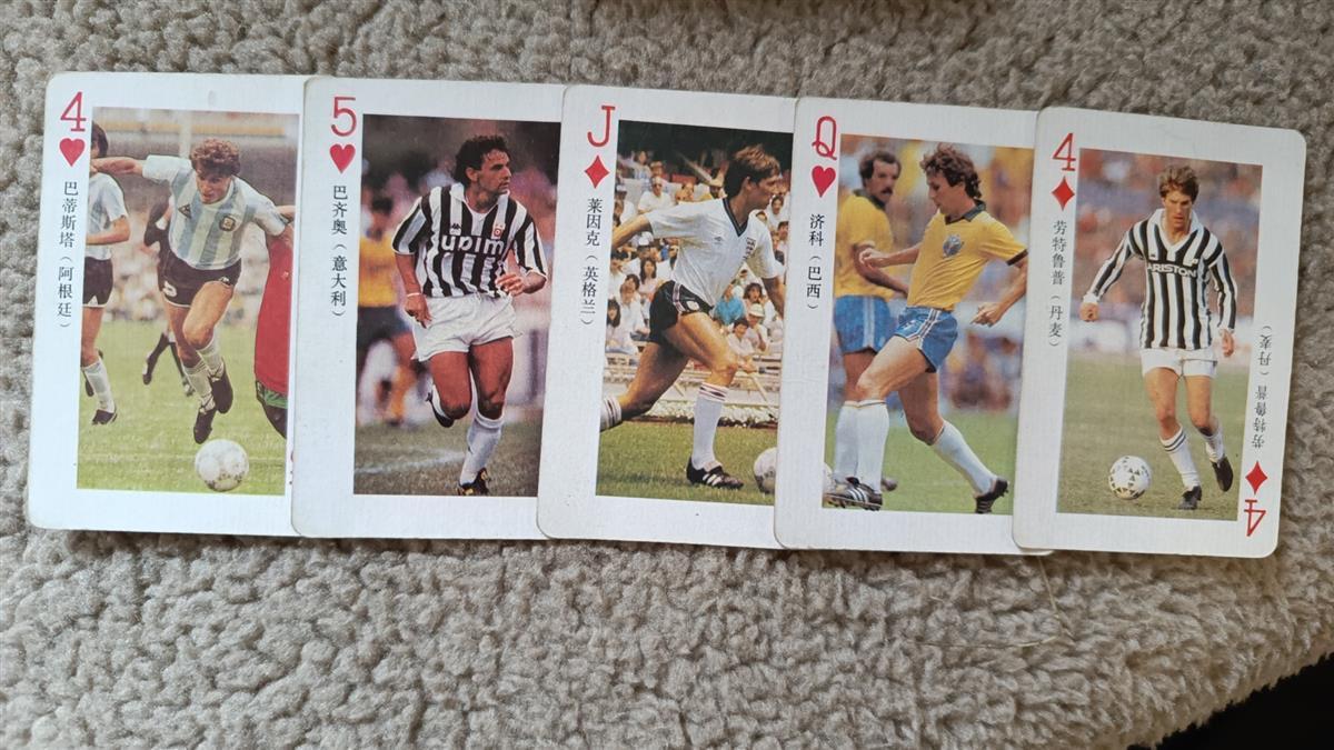 李先生告诉极目新闻记者,这副扑克牌是1992年他在一个售报亭买的。他说,自己从1986年开始迷上足球,“那一年世界杯,阿根廷队3:2战胜了德国战车,一代‘球王’马拉多纳捧起冠军奖杯。”