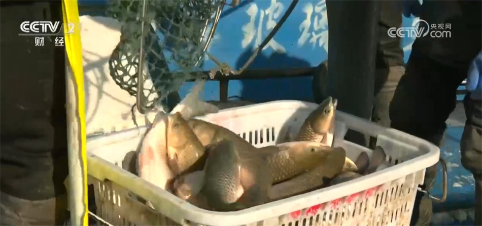而在冷水鱼货源地之一的东北,大庆的冬捕活动进入高潮。2000多米的大网缓缓升起,这一网最大的鱼有30多斤,预计今年整个大庆冬捕期水产品产量可达400万斤,同时打开线上线下销售渠道,线上预售活鱼已经超过50万斤,同比增长10%。