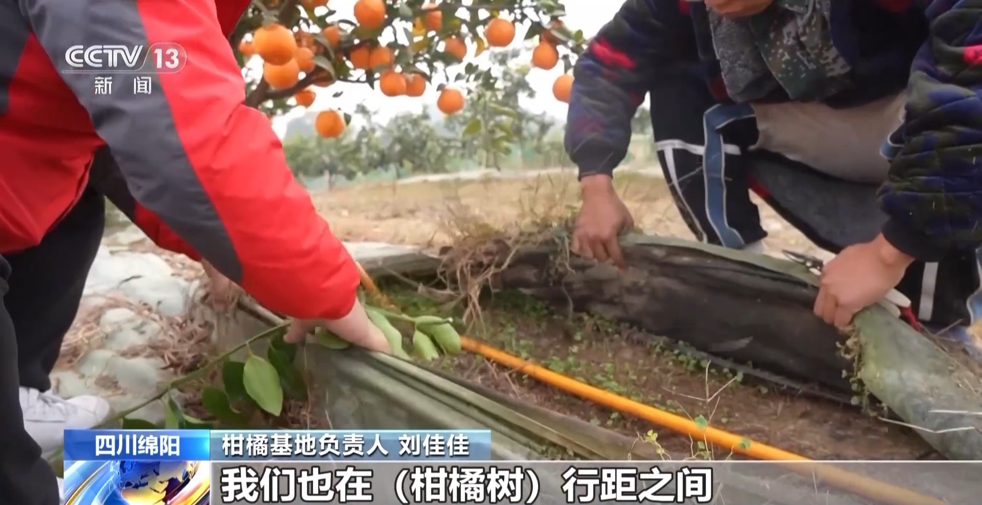 柑橘基地负责人 刘佳佳:用沼液灌溉的柑橘,口感和甜度都会更好一些。我们在柑橘树之间预留了行间距,用来种植大豆,增加收入。