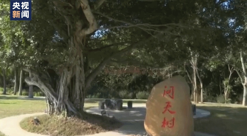 在这条转运路途的旁边处,有一颗百年老树“问天树”。文昌航天发射场成立以来的历次任务25块纪念章悬挂在问天树上,印证了发射场硕果累累。