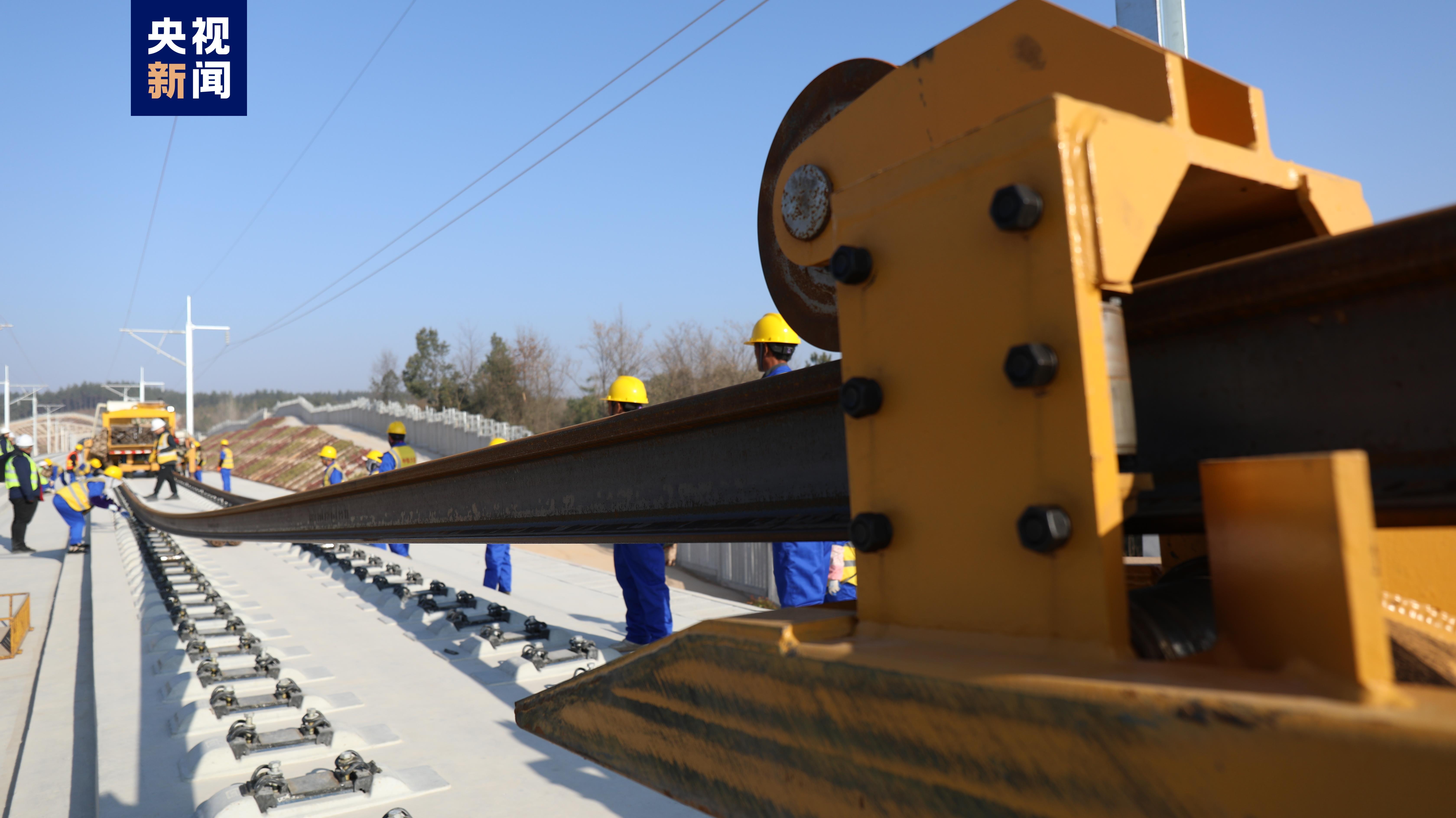 1月16日上午,随着首对500米长钢轨被铺轨机平稳地铺设在无砟轨道板上,标志着宣绩高铁全线开始铺轨。