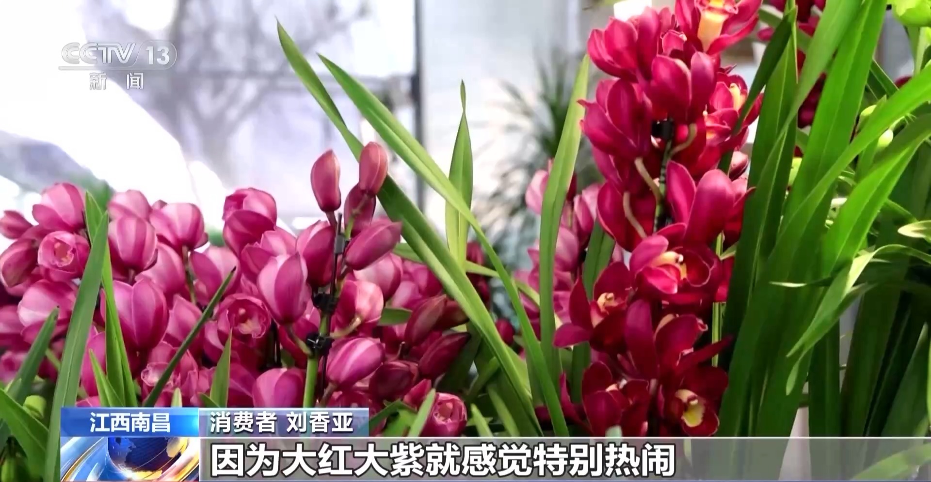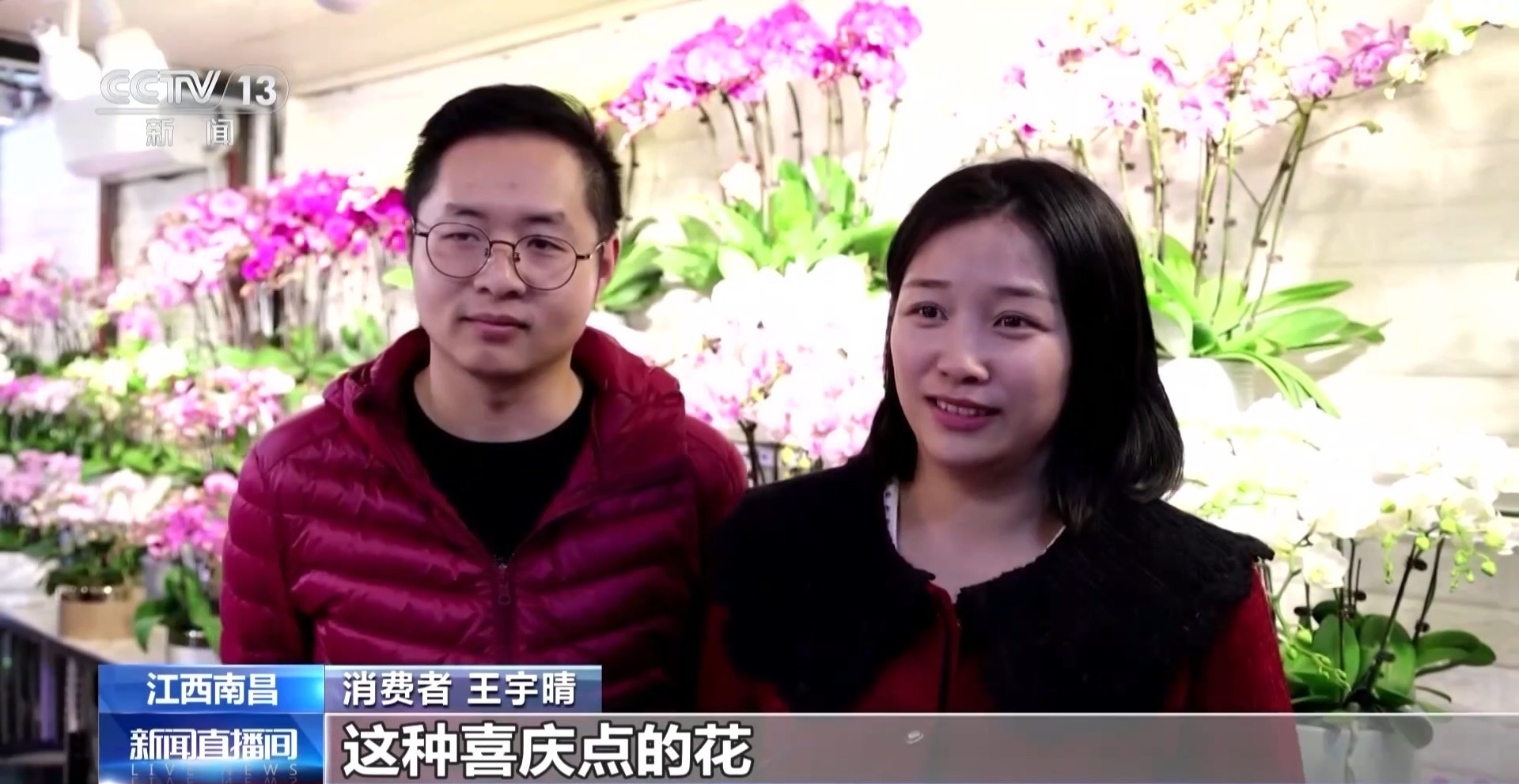 消费者 王宇晴:想给家里过年挑一点蝴蝶兰这种喜庆点的花,也买了玫瑰这些,尽可能是偏红一点、喜庆一点的。我也想过年把家里装得喜庆一点。
