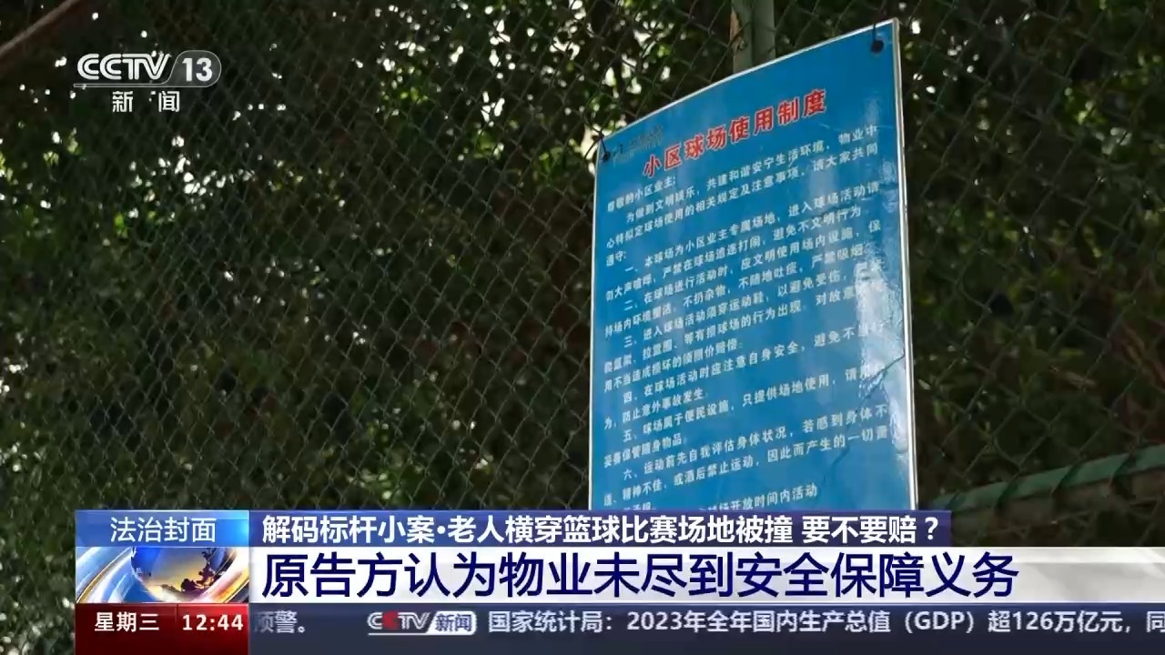 重庆市万州区人民法院民一庭副庭长 李亚飞:因为这个老人她是进入篮球场的中央,被这个打球的瞿某撞伤,而不是通过篮球场当中设施设备的损害,造成她的这种摔倒。这种篮球场确实周边有护网损坏,但是她也不是从周边损坏的这个护网钻进去的,她是从大门进去的。所以我们觉得这个物管公司是尽到了管理职责,在本案当中也不应当承担侵权责任。