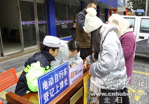 交警免费为电动自行车上牌。通讯员 供图
