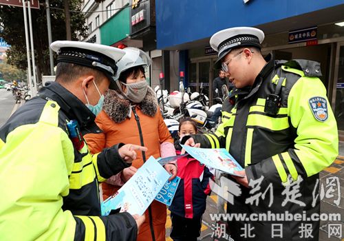 交警为市民宣讲交规。 通讯员 供图