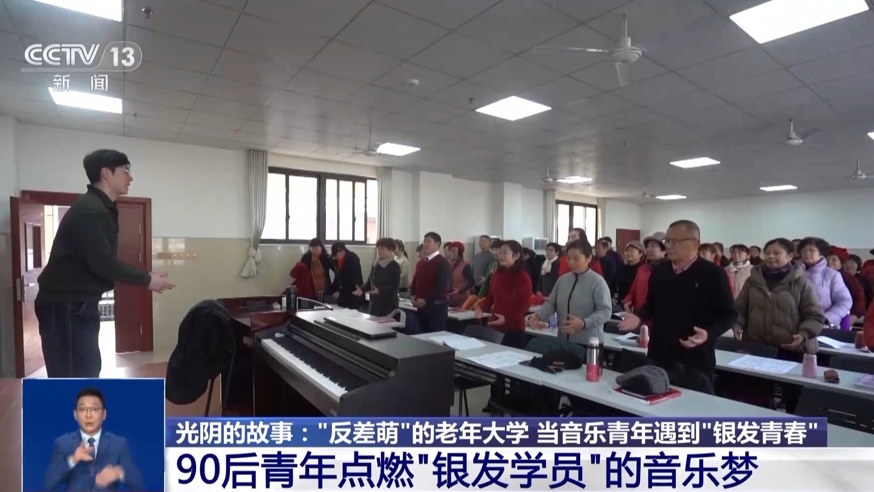 走红网络的短视频,发生在江西九江的一所老年大学里。一位90后青年,用别具一格的教学方式,引导老年人重新点燃音乐梦想,他也架起老人与家人沟通的“桥”,让亲情化作关注与守护。