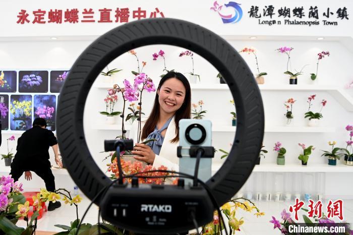 图为蝴蝶兰直播专场。中新网记者 张金川 摄