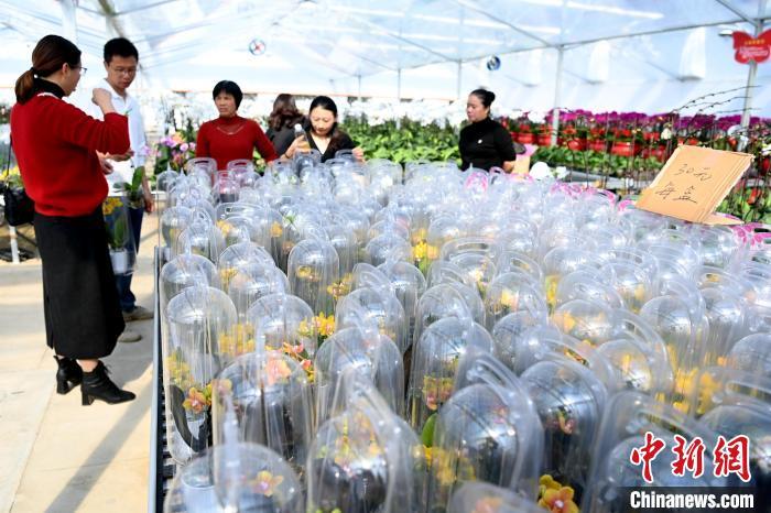 图为民众选购蝴蝶兰。中新网记者 张金川 摄