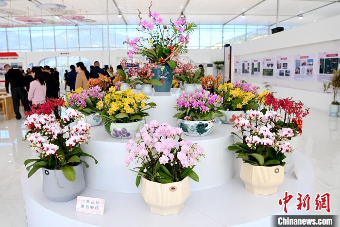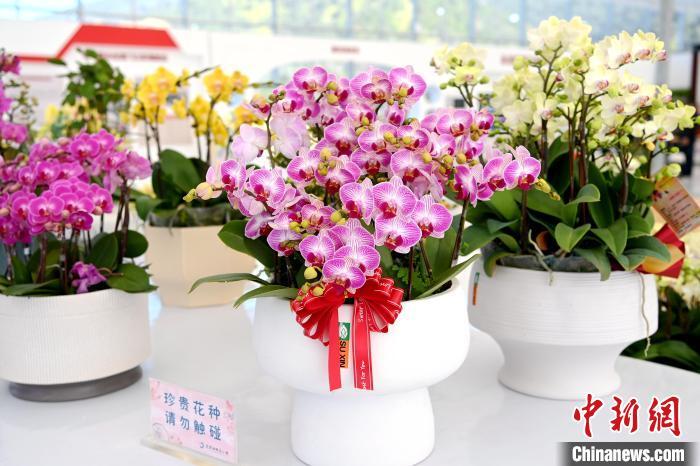 图为蝴蝶兰盆景展示。中新网记者 张金川 摄
