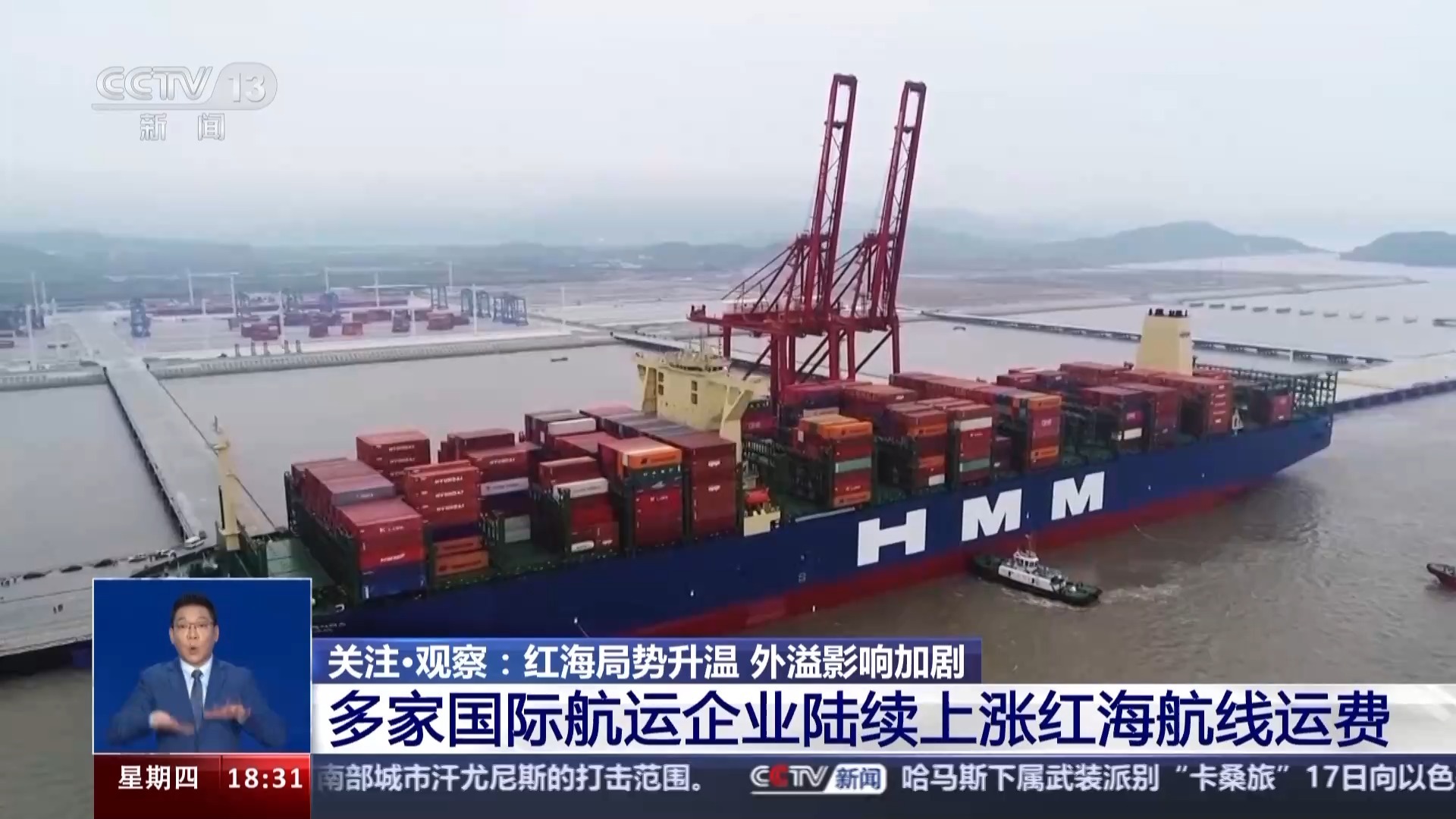 红海航线运价不断上涨 外贸企业运输成本大幅度提升